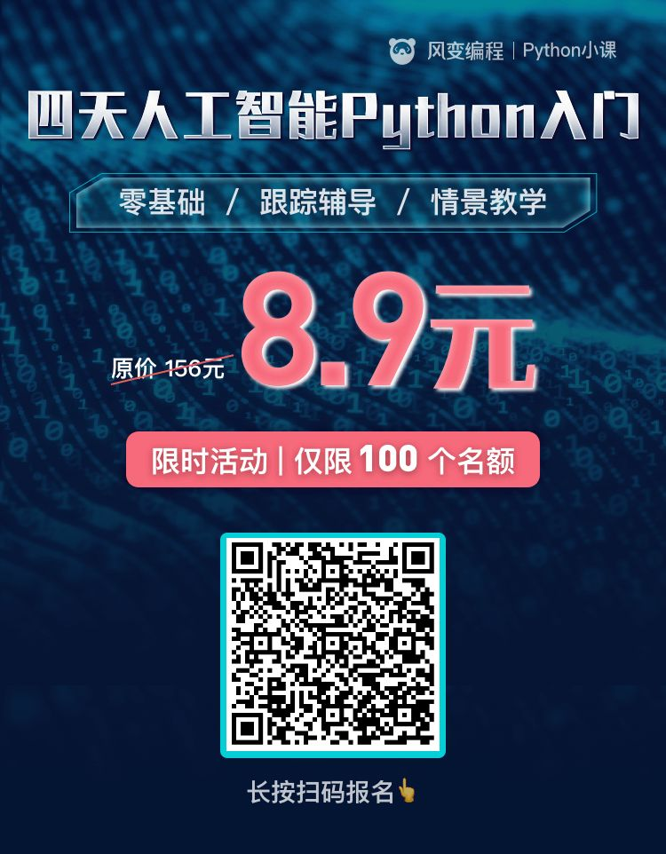 这次我与python小课(风变编程)合作了「四天人工智能Python入门」。