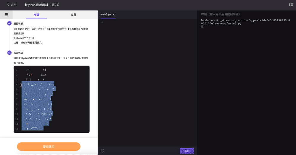 作业第0关,打印皮卡丘。