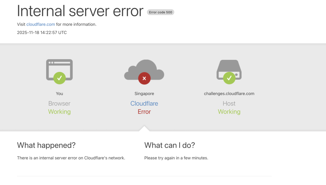 直接访问https://challenges.cloudflare.com/,一看服务器500报错了……