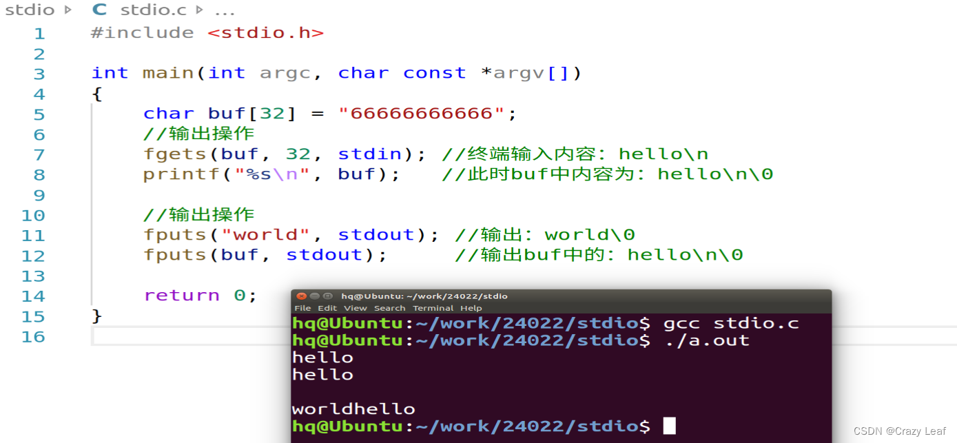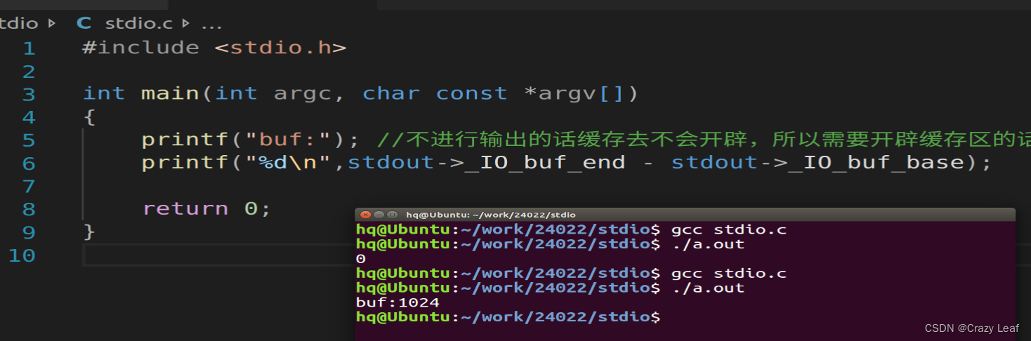 printf("buf:"); //不进行输出的话缓存去不会开辟,所以需要开辟缓存区的话需要先调用标准输出函数。