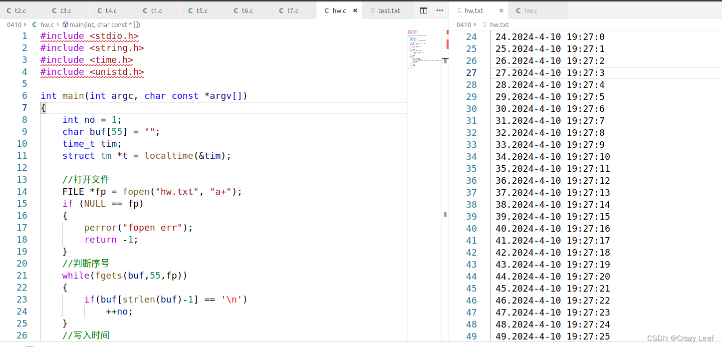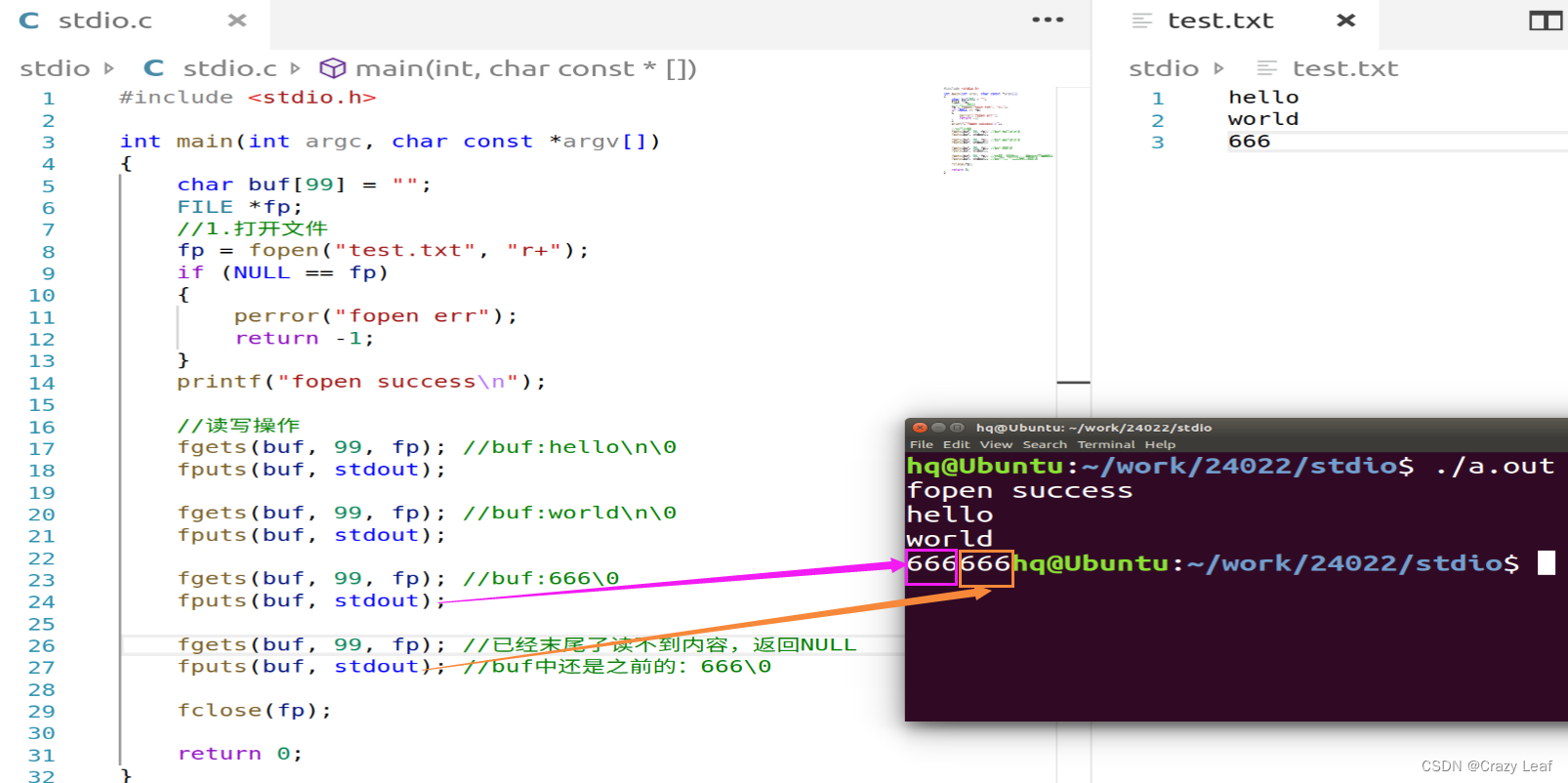 注:当a+的方式打开文件时,写只能在末尾进行追加,定位操作是无法改变写的位置,但是可以改变读的位置