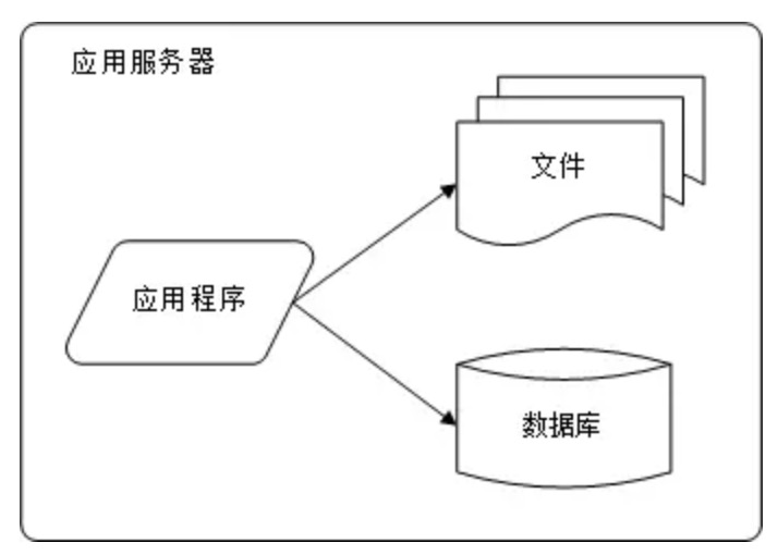 应用程序、数据库、文件等所有资源都在一台服务器上。