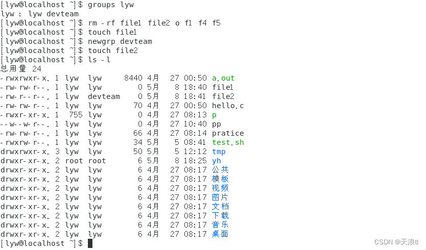 newgrp 功能:修改用户的有效组(Effective Group),作为创建文件的属组