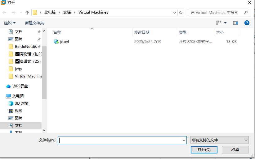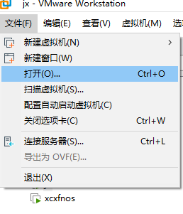 2、打开虚拟机软件,点文件,打开,选择jx.ovf文件