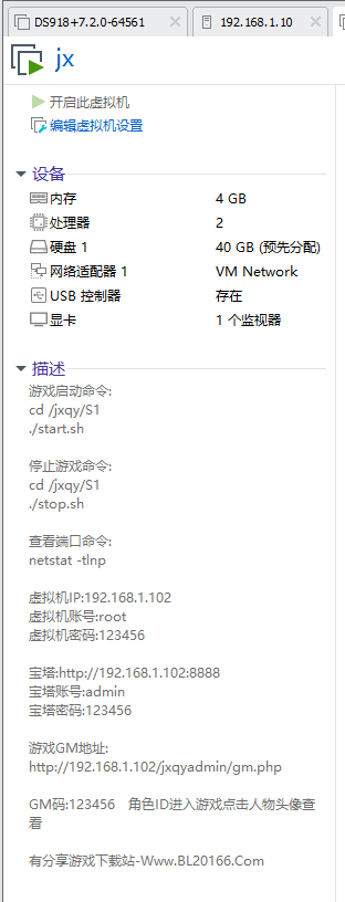 2、下载剑侠服务器虚拟机压缩包虚拟机压缩包二