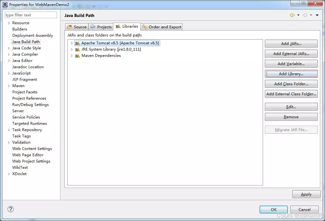 找到Libaries,添加Tomcat8.5的依赖库,点击OK