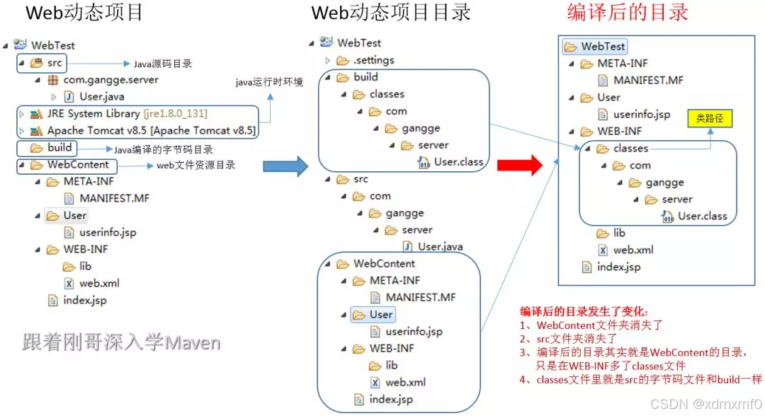 部署:最终在sevlet容器中部署的不是动态web工程,而是编译后的文件