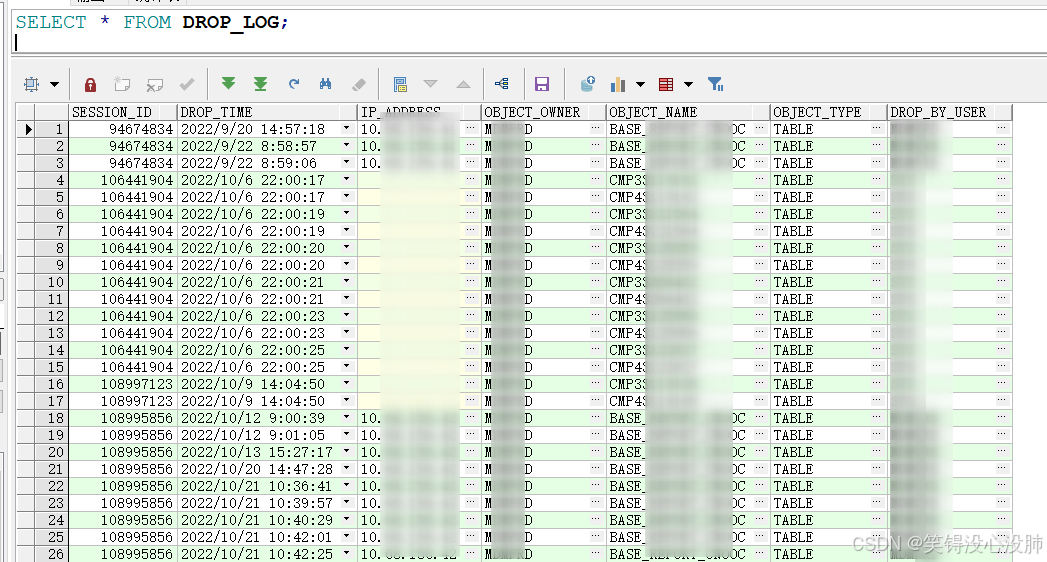 (1) 创建drop操作的用户留痕表