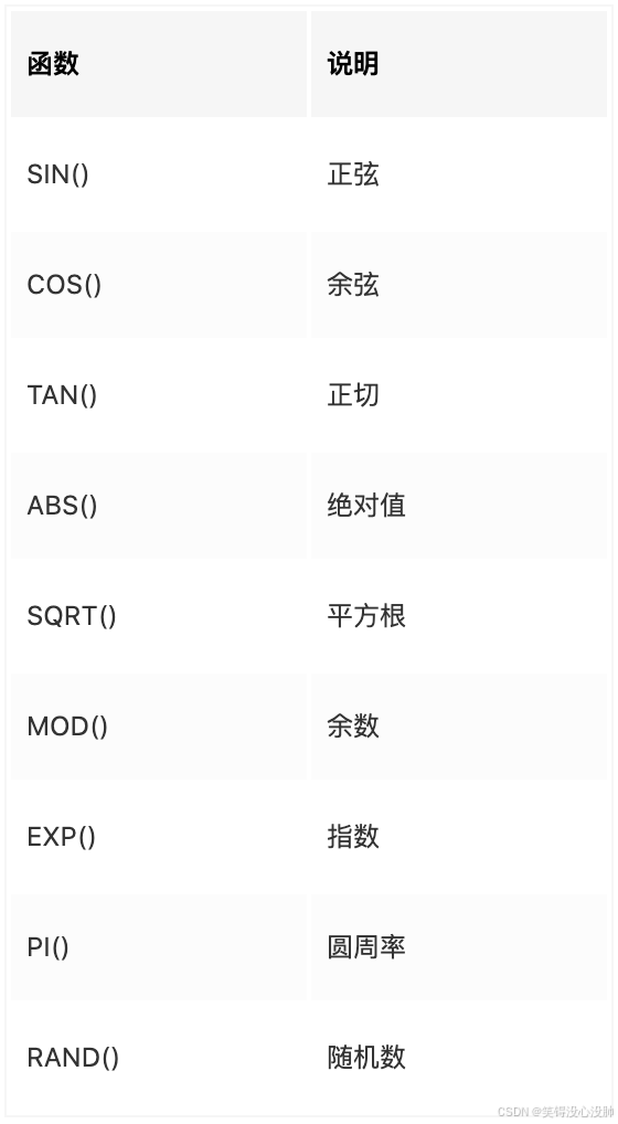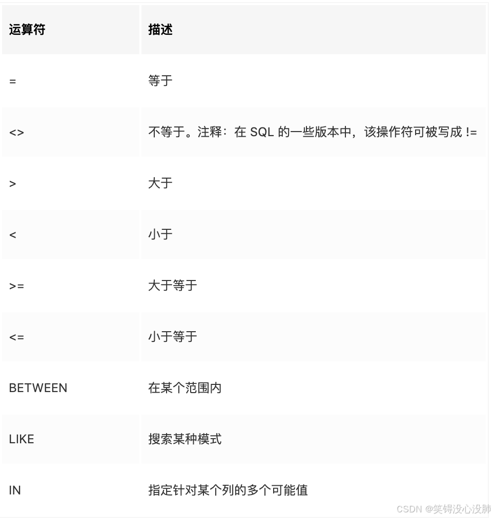 - LIMIT 限制返回的行数。可以有两个参数,第一个参数为起始行,从 0 开始;第二个参数为返回的总行数。