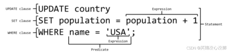 - 子句 - 是语句和查询的组成成分。(在某些情况下,这些都是可选的。)