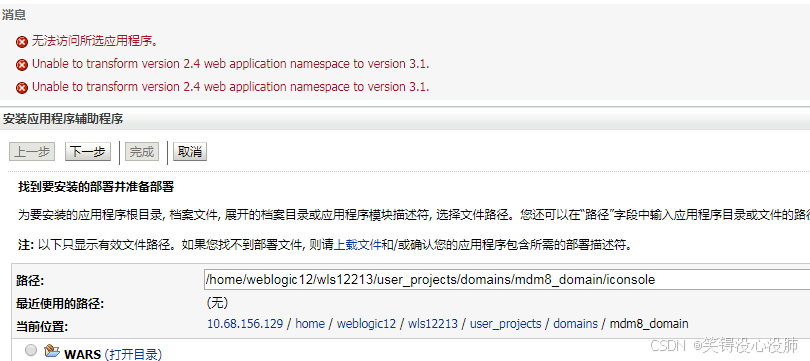 解决 Unable to transform version 2.4 web application namespace to version 2.5 weblogic12c(12.1.3)部署应用报错