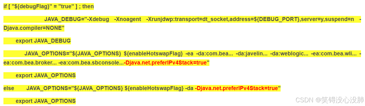 else JAVA_OPTIONS="${JAVA_OPTIONS} ${enableHotswapFlag} -da -Djava.net.preferIPv4Stack=true"