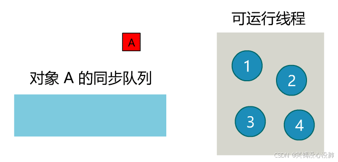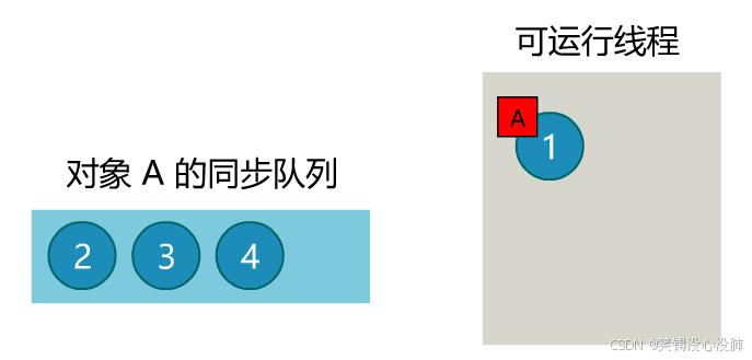 比如,有一个锁对象 A,线程 1 此时持有这把锁。线程 2、3、4 分别尝试抢这把锁失败。