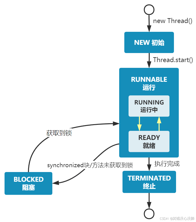 当该线程获取到了锁后,便可以进入 synchronized 块,此时线程状态变为 RUNNABLE。