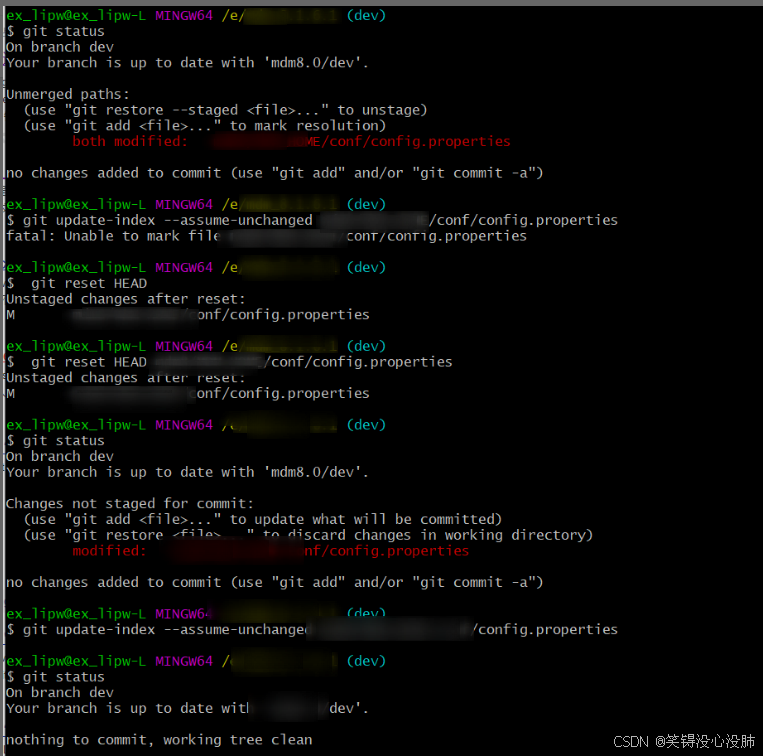 结果显示冲突解决,提交成功。