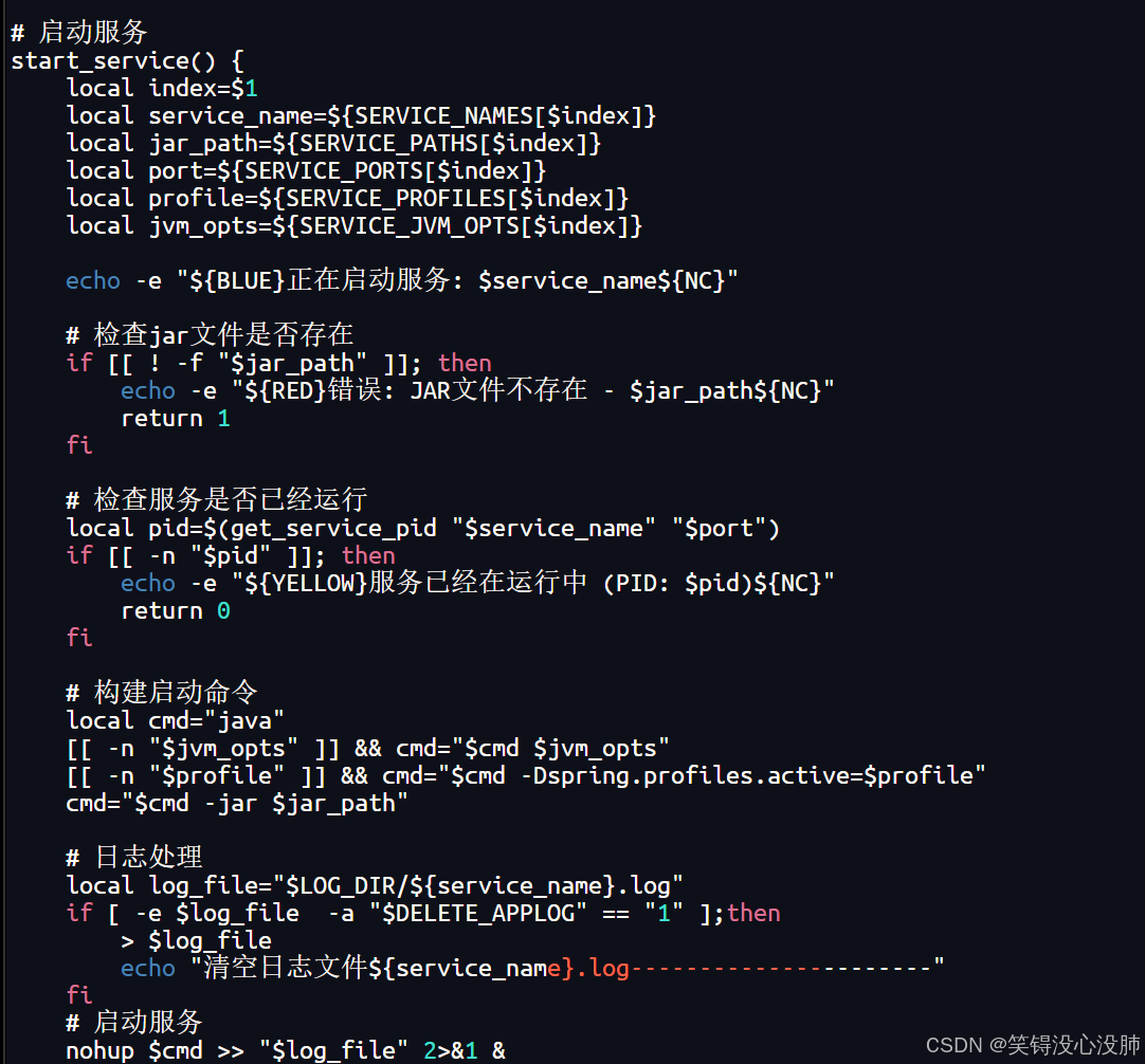 - 启停脚本文件高可用,引用配置文件实现高可用,几乎不用修改。