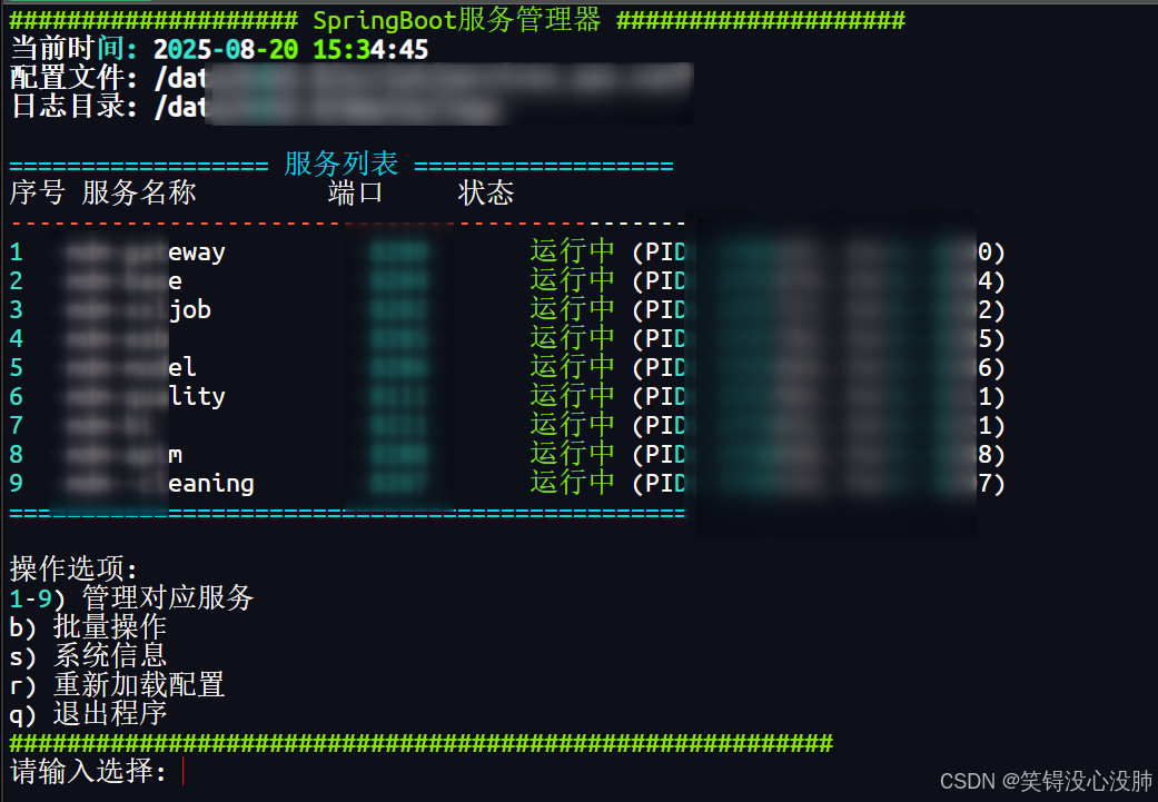 echo "# 支持多服务管理、日志查看、状态监控 #"