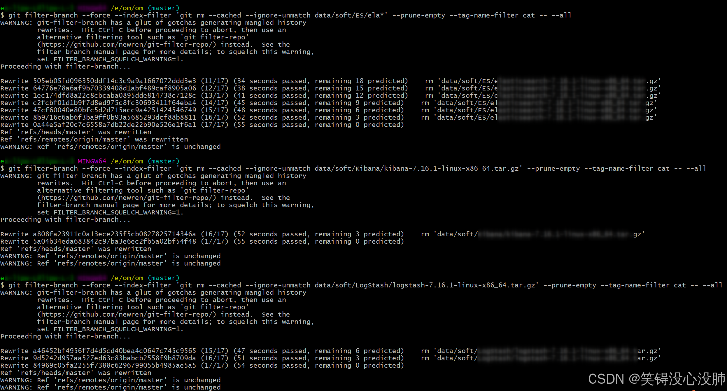 $ git filter-branch --force --index-filter 'git rm --cached --ignore-unmatch data/soft/ES/ela*' --prune-empty --tag-name-filter cat -- --all