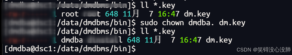 2、上传申请下来的license文件,并赋权给dmdba用户