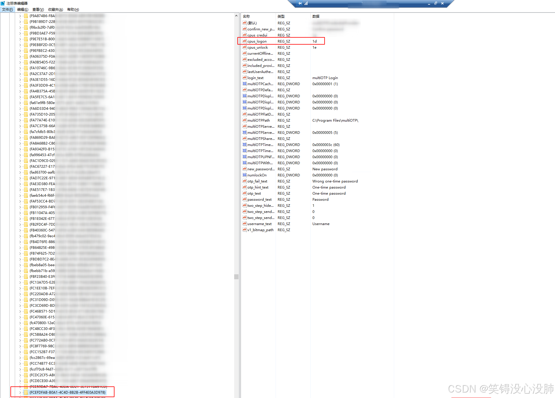 - 注意:尽量修改下注册表的部分信息,不然可能开启OTP认证导致管理员登录不进去(cpus_logon=1e),切记 需要修改成(cpus_logon=1d)