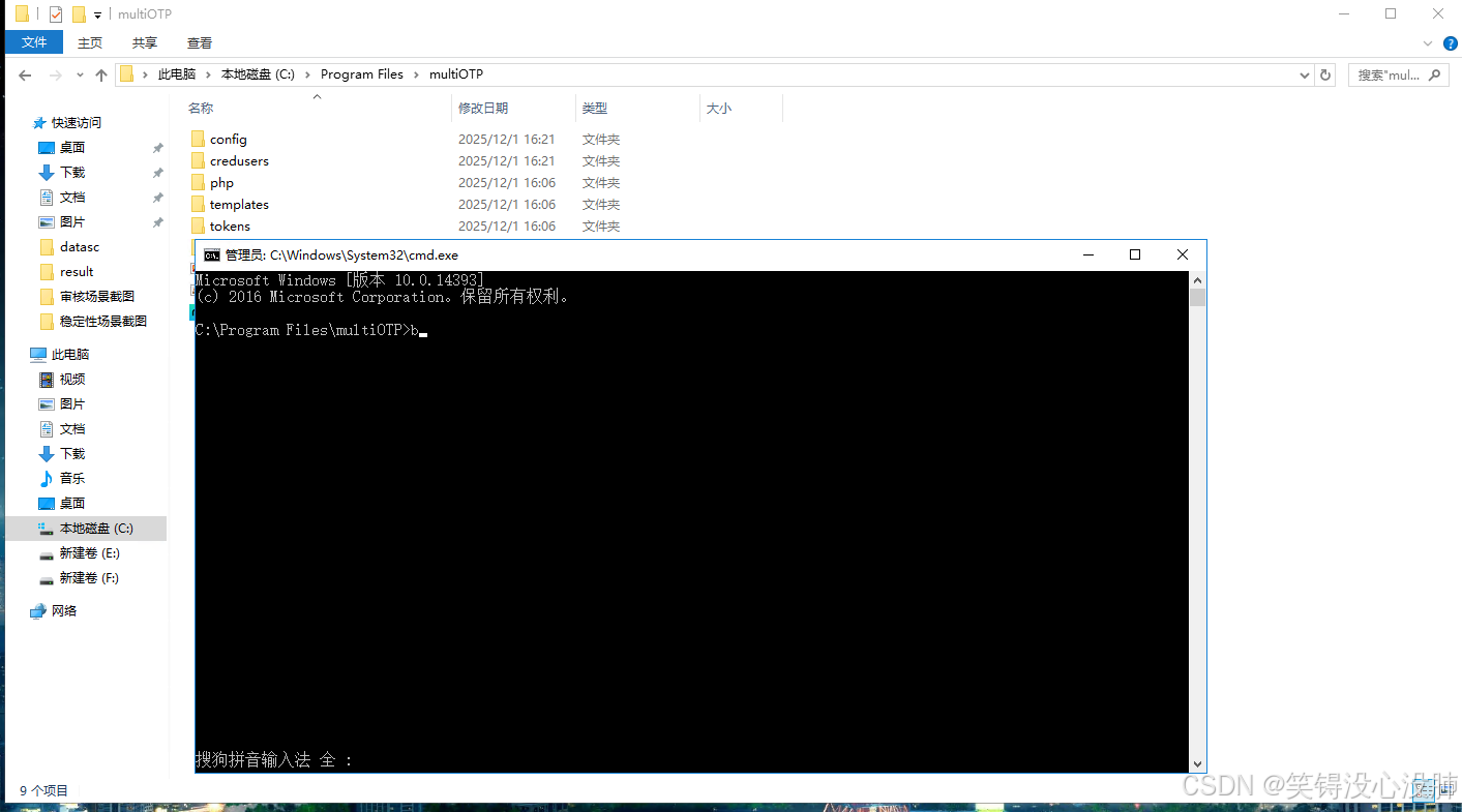 安装完程序后,还需要进行些设置,我们来到multiotp的安装目录,一般来说是在C:\Program Files\multiOTP目录下。以管理员权限打开命令提示符,输入命令C:\Program Files\multiOTP回车,进到multiotp的安装目录;