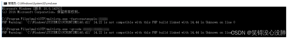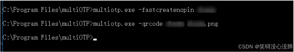 然后输入multiotp.exe -fastcreatenopin 用户名 命令回车,其中 用户名 是你要设置两步验证的用户名。