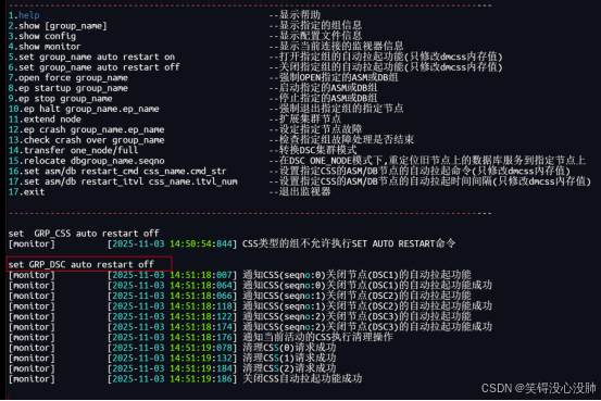 [monitor] [2025-11-03 14:51:18:064] 通知CSS(seqno:0)关闭节点(DSC1)的自动拉起功能成功