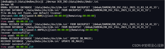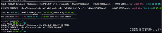项目中使用为符合信创要求,数据库使用DM8,目前在备份恢复的测试验证阶段,备份目前没问题,需要做恢复验证。