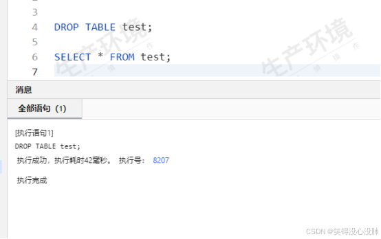 1、删除测试的数据表