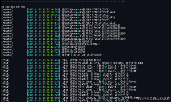 [monitor] [2025-11-03 15:05:40:595] 通知CSS(seqno:0)执行EP STARTUP(DSC1)