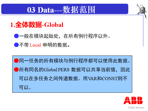 本文解析了机器人程序中的四种关键数据范围:全局数据、任务数据、模块数据和例行程序数据,帮助开发者理解在不同工况下如何有效管理数据.