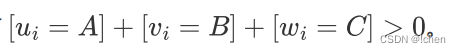 if ((u[i] != A) && (v[i] != B)) w[i] = C;