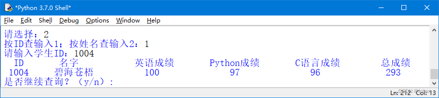 elif option_int == 2: # 查找学生成绩信息
