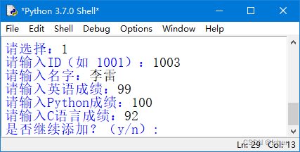 elif option_int == 1: # 录入学生成绩信息