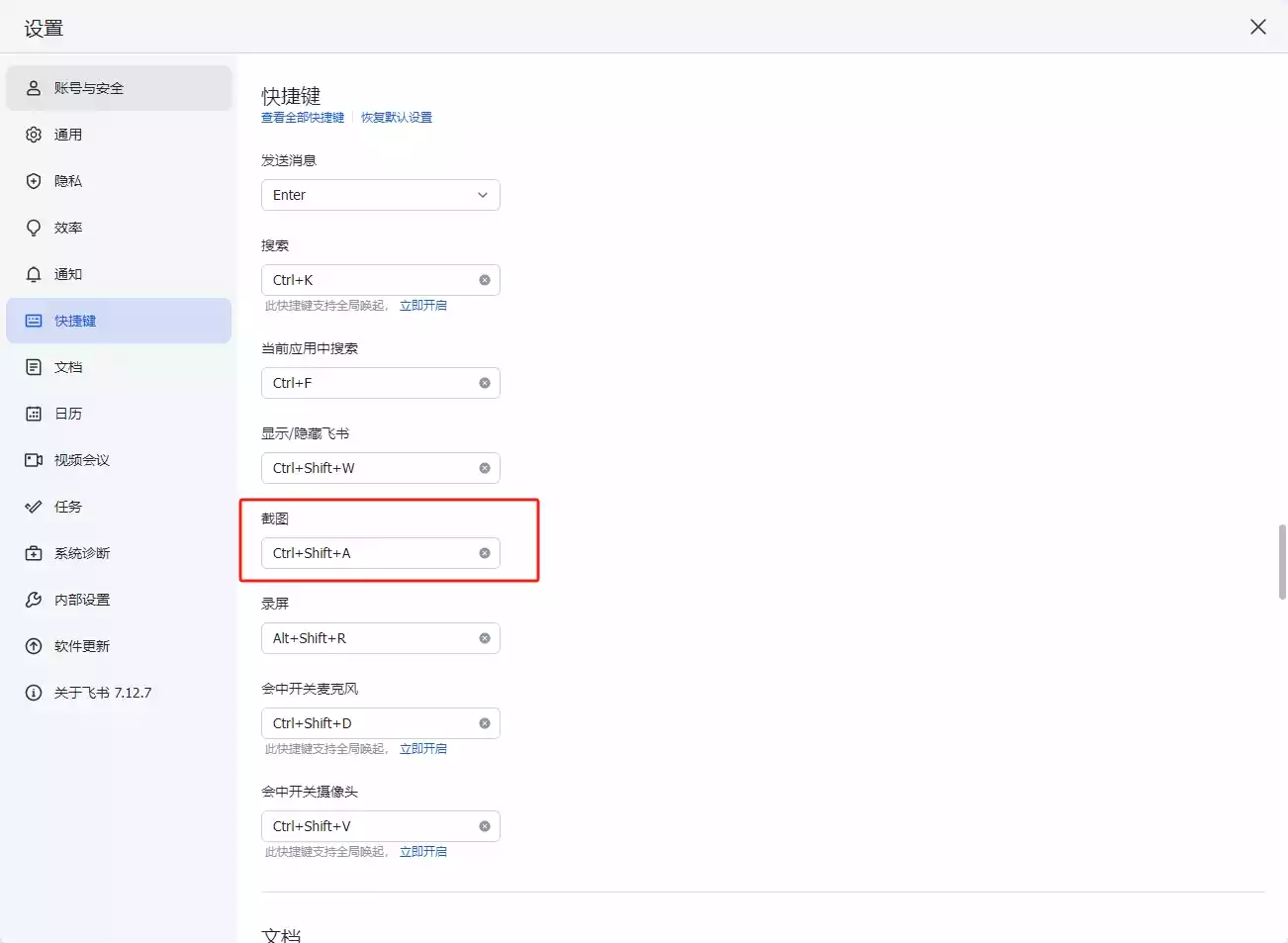 飞书的录屏是继承在截图这个功能里的先Alt+shift+A就可以调出截屏,在最顶选择录屏