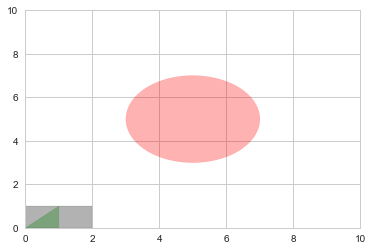 circ = plt.Circle((5, 5), 2, color='r', alpha=0.3)