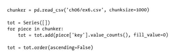 read_csv返回TextParser对象让你可以根据chunksize对文件逐块迭代