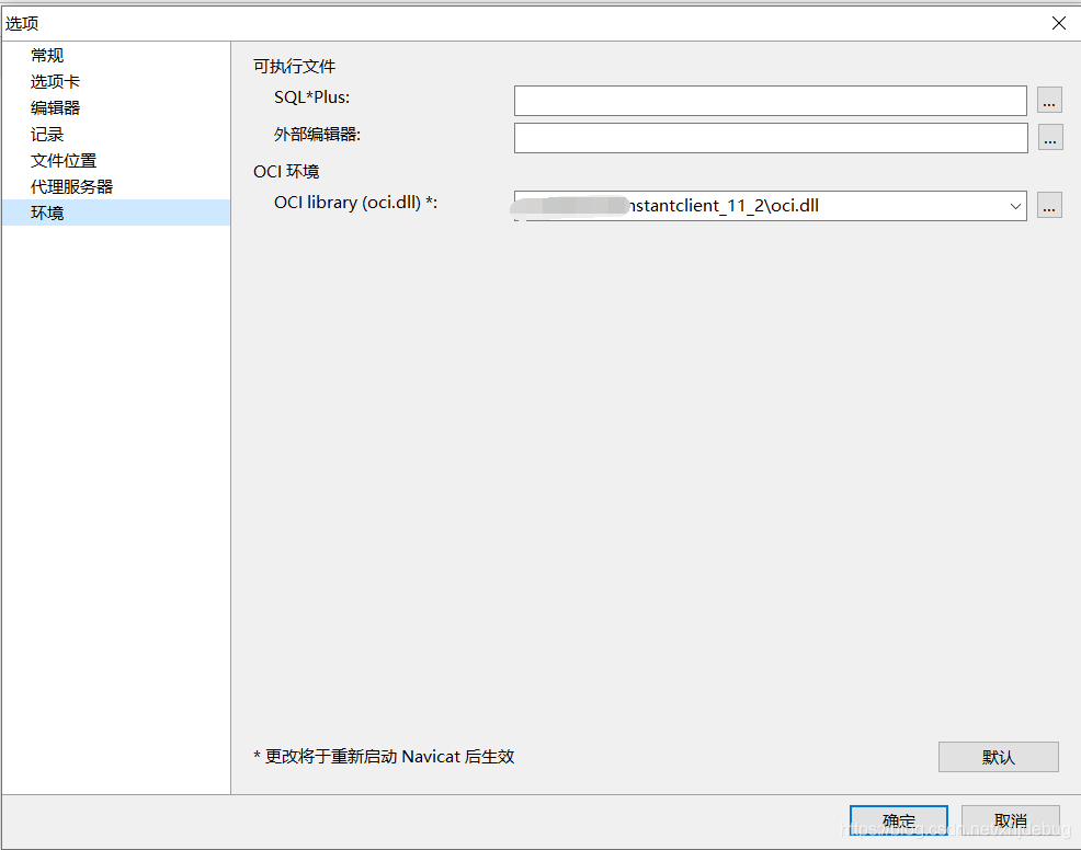 4、打开navicat->tools->oci,选择你刚才下载的instantclient,找到oci.dll,设置为路径就可以了,测试连接!