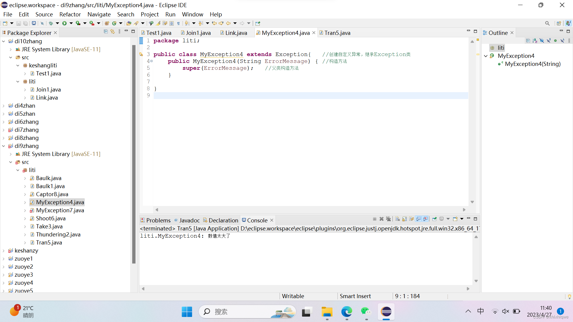 使用Java内置的异常类可以描述在编程时出现的大部分异常情况。除此之外,用户只需继承Exception类即可自定义异常类。在程序中使用自定义异常类,大体可分为以下几个步骤: