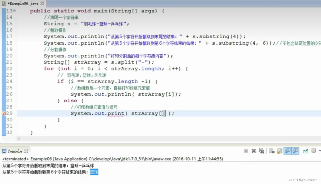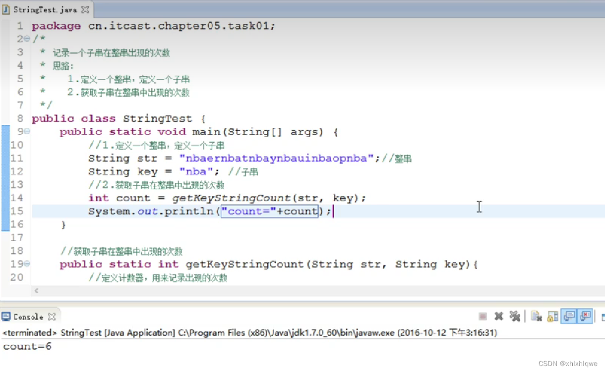 从上述语法格式中可以看出,throws关键字需要写在方法声明的后面,throws后面需要声明方法中发生异常的类型,通常将这种做法称为方法声明抛出一个异常。代码示例: