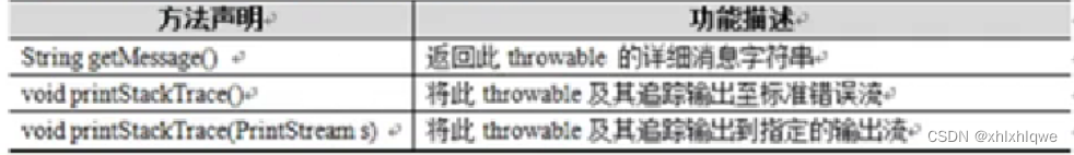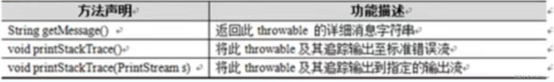 通过前面的学习读者已经了解了Throwable类,为了方便后面的学习,接下来将Throwable类中的常用方法罗列出来: