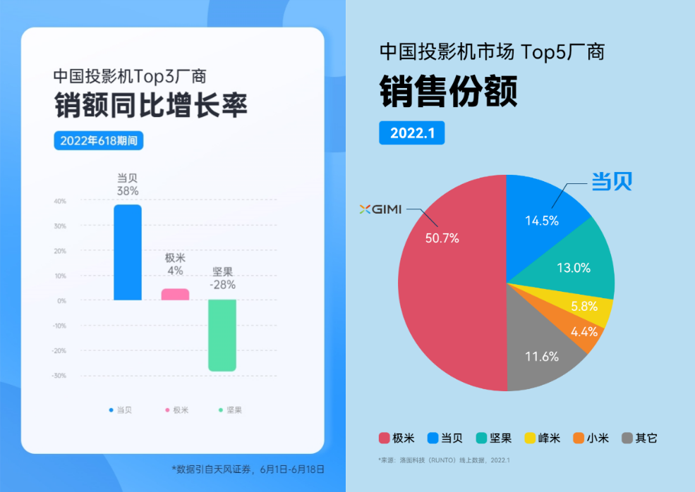 除了软件实力行业领先外,当贝在智能硬件领域的成绩也同样亮眼。在品类定位已趋向于成熟的智能投影市场中,当贝进行了“LED+激光”的双线布局,着重打造高亮度投影,其前瞻性的策略与格局,使得产品在市场中形成“降维打击”,在行业赛道中快速超越对手。短短三年内,当贝就迅速跻身智能投影市场前二,成为业内仅有的连续3年成长力第一的品牌,也是国内投影市场发展最快的品牌。2021年,当贝投影先后被评为京东2021年度十大品牌、2021年阿里妈妈m awards年度经营黑马奖等。