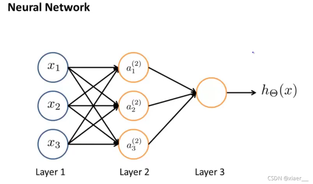 从左到右为输入层(1)、隐藏层(2)、输出层(3),(在整个神经网络中我们还会用到偏置值bias),其中隐藏层可以有多个
