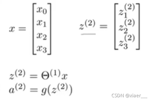 ,加上偏置值,a成为了一个四维向量。其中g为激活函数,通过向量计算得到输出h