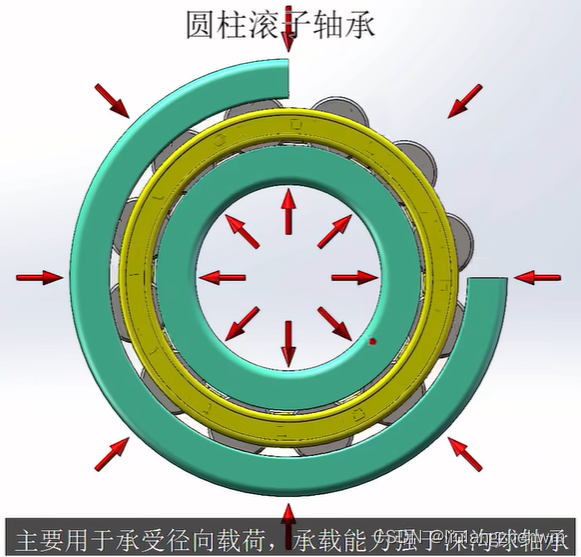 其中, 圆柱滚子轴承的滚子是圆柱, 其长度和直径之比小于 3; 滚针轴承的滚动体是滚针, 其长度与直径之比大于 3, 且直径小于 5mm; 调心滚子轴承的滚子是球面滚子。