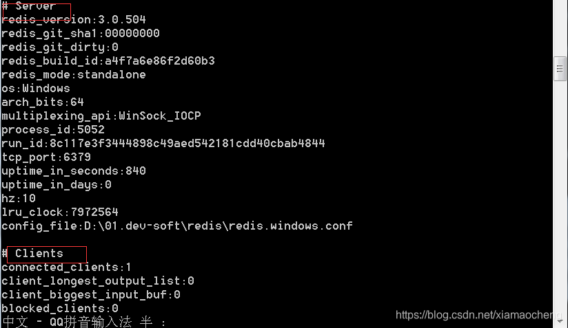 查看redis服务运行信息,分为 9 大块,每个块都有非常多的参数,这 9 个块分别是: