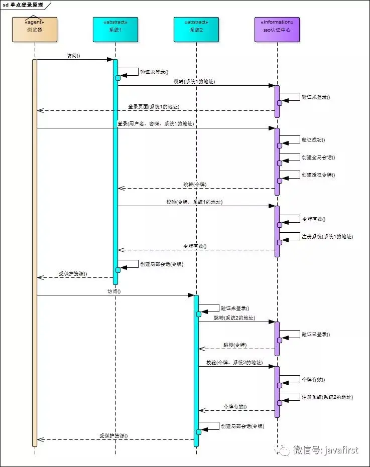 用户访问系统1的受保护资源,系统1发现用户未登录,跳转至sso认证中心,并将自己的地址作为参数