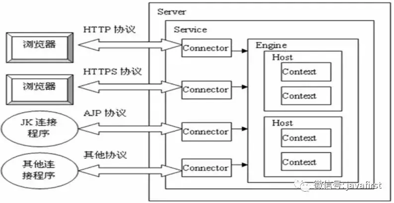 在一个中可以包含多个,它代表一个虚拟主机(即一个服务器程序可以部署在多个有不同IP的服务器主机上),它可以包含一个或多个应用
