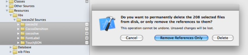 4. 回到Xcode,选择libs下面的group,然后删除,记得只删除引用,如下所示: