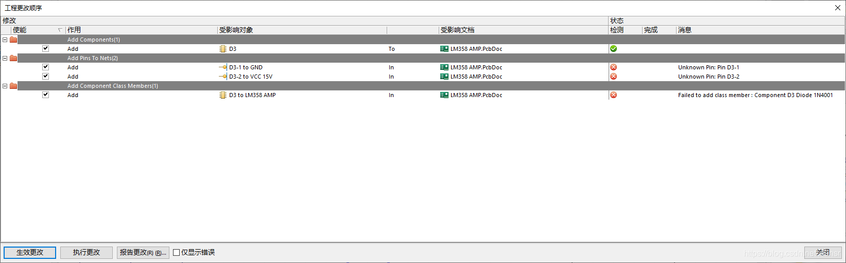 AD 软件从原理图更新到PCB出现Unknow Pin 错误非常普遍,有因为元件封装问题,也有的是网络表问题。我找到一种超简单的解决办法。